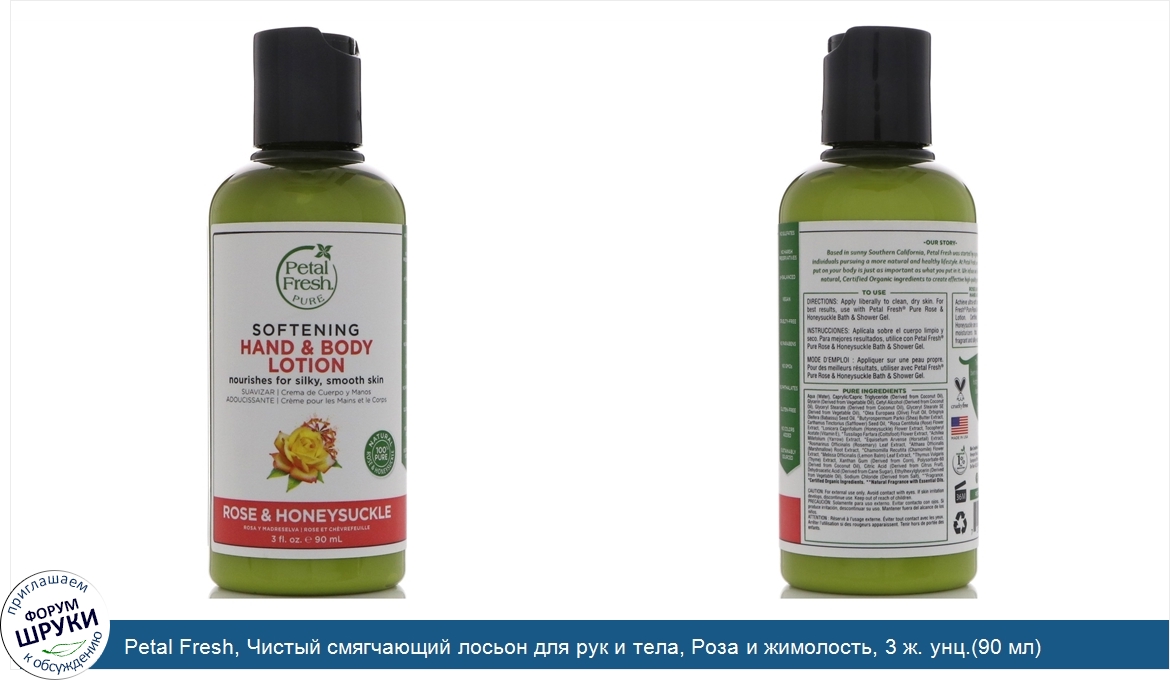 Petal Fresh, Чистый смягчающий лосьон для рук и тела, Роза и жимолость, 3 ж. унц.(90 мл)