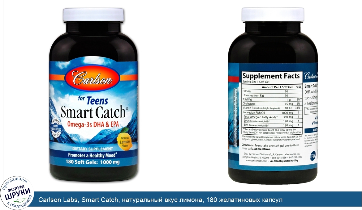 Друзья, если у вас есть отзыв/дополнение/комментарий/вопрос относительно Carlson Labs, Smart Catch, натуральный вкус лимона, 180 желатиновых капсул - напишите его ответом в эту тему (это будет полезно всему сообществу в целом и вам в отдельности).