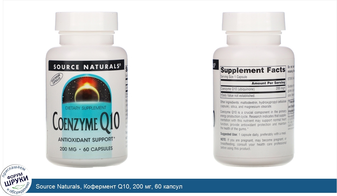 Source Naturals, Кофермент Q10, 200 мг, 60 капсул