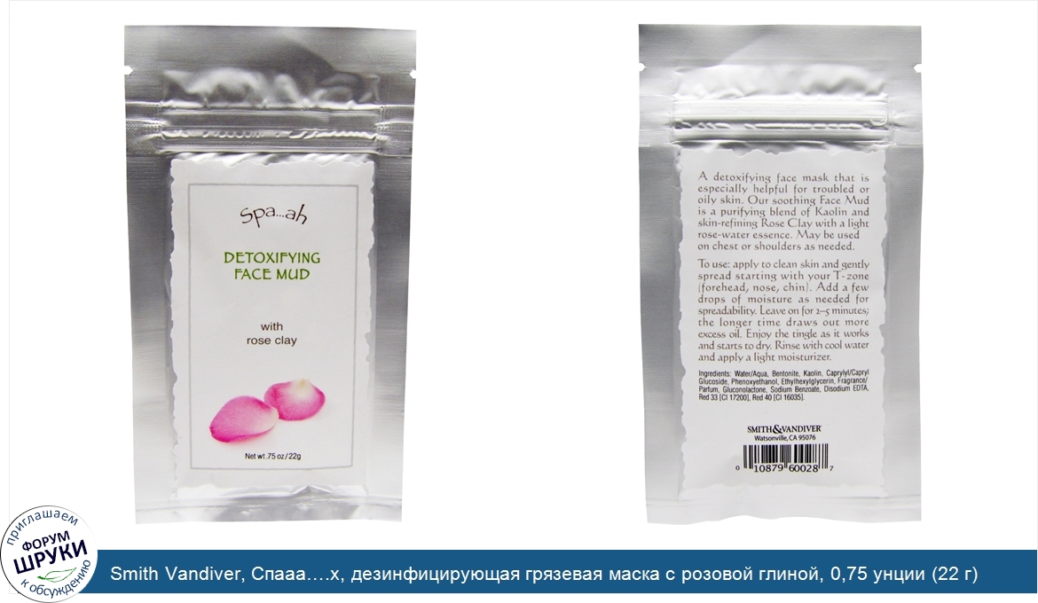 Друзья, если у вас есть отзыв/дополнение/комментарий/вопрос относительно Smith Vandiver, Спааа….х, дезинфицирующая грязевая маска с розовой глиной, 0,75 унции (22 г) - напишите его ответом в эту тему (это будет полезно всему сообществу в целом и вам в отдельности).