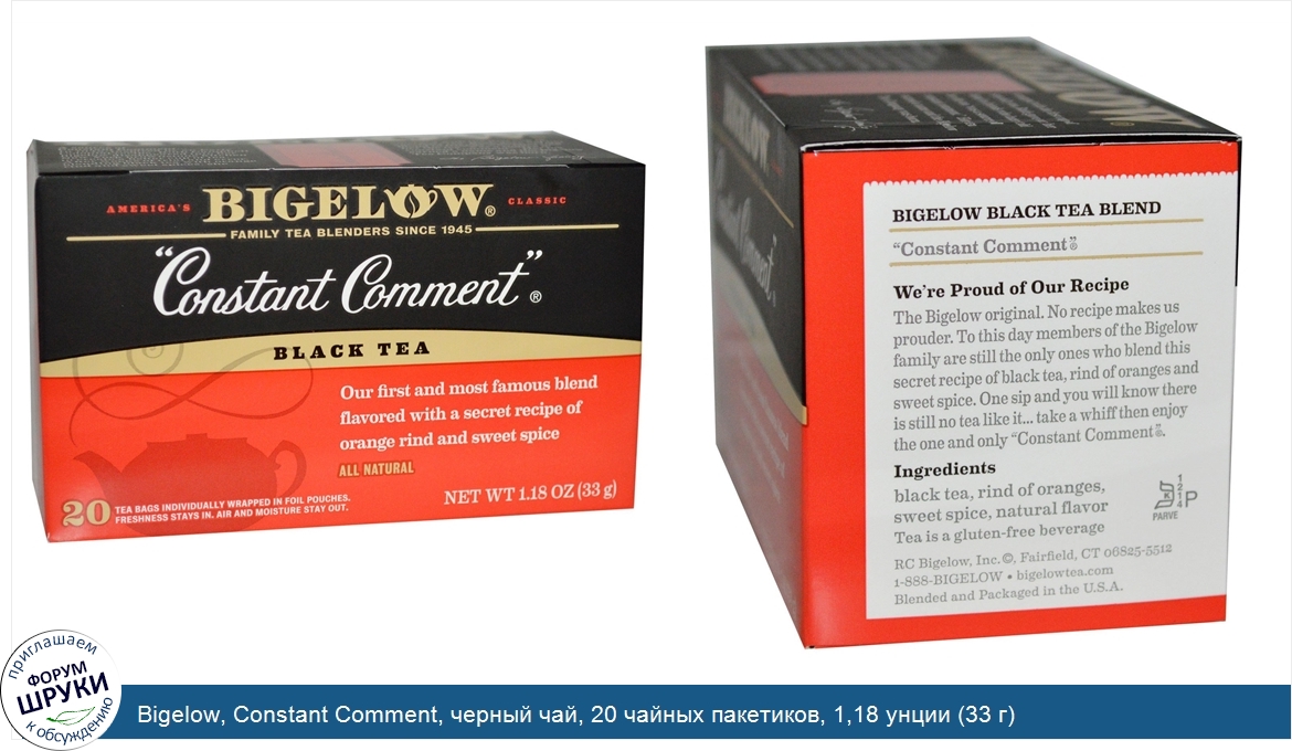 Друзья, если у вас есть отзыв/дополнение/комментарий/вопрос относительно Bigelow, Constant Comment, черный чай, 20 чайных пакетиков, 1,18 унции (33 г) - напишите его ответом в эту тему (это будет полезно всему сообществу в целом и вам в отдельности).