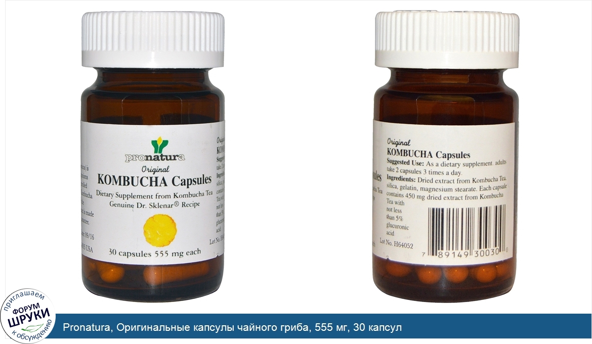 Pronatura, Оригинальные капсулы чайного гриба, 555 мг, 30 капсул