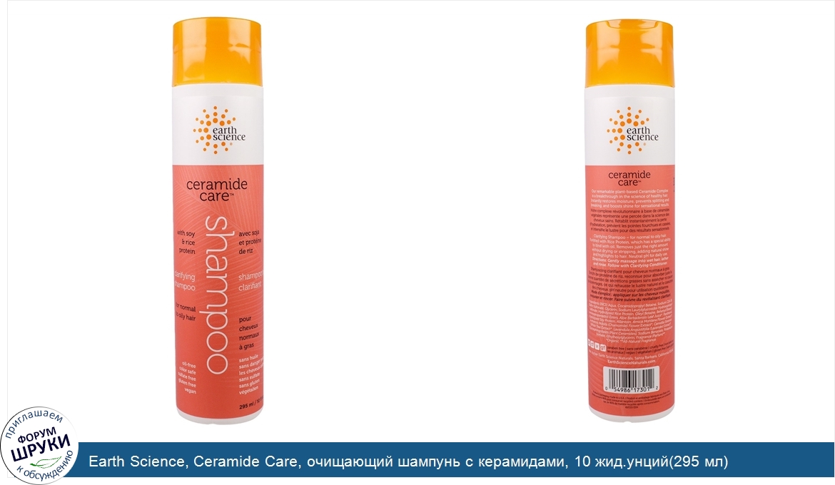 Earth Science, Ceramide Care, очищающий шампунь с керамидами, 10 жид.унций(295 мл)