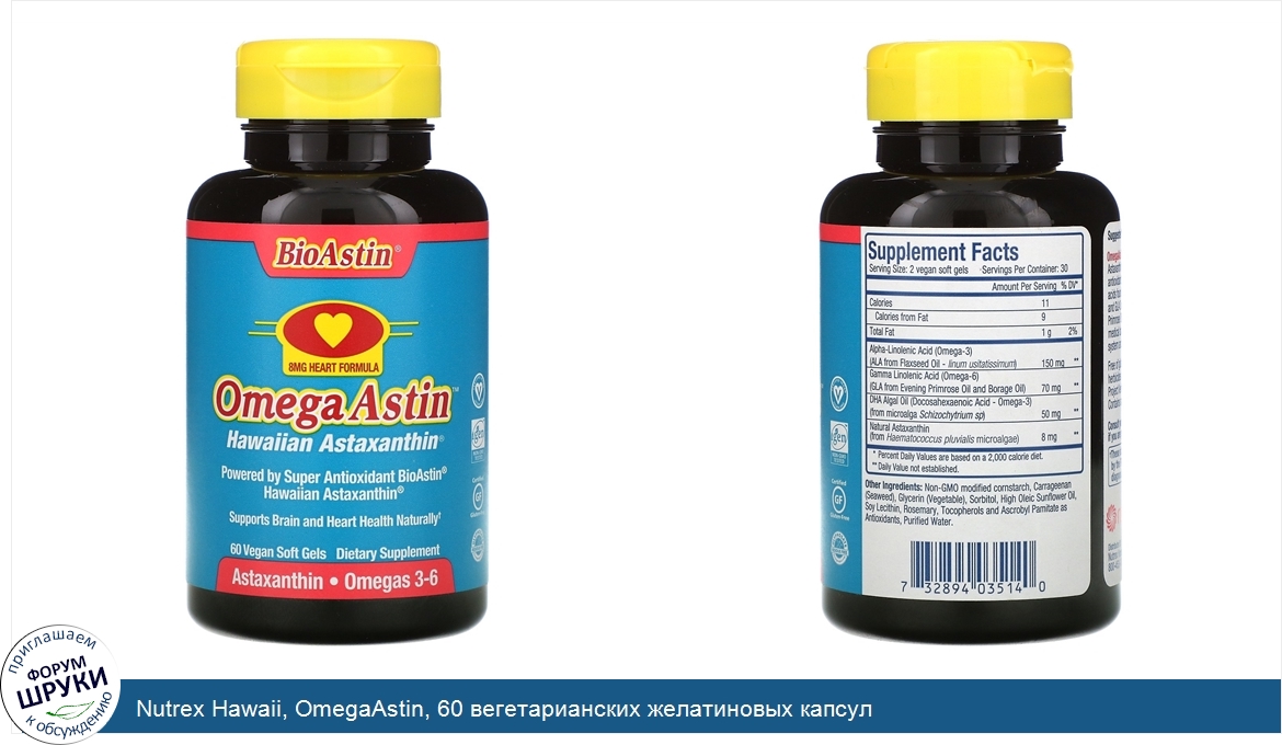 Nutrex Hawaii, OmegaAstin, 60 вегетарианских желатиновых капсул