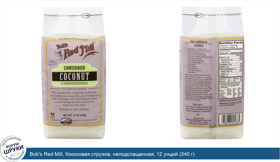 Друзья, если у вас есть отзыв/дополнение/комментарий/вопрос относительно Bob's Red Mill, Кокосовая стружка, неподслащенная, 12 унций (340 г) - напишите его ответом в эту тему (это будет полезно всему сообществу в целом и вам в отдельности).