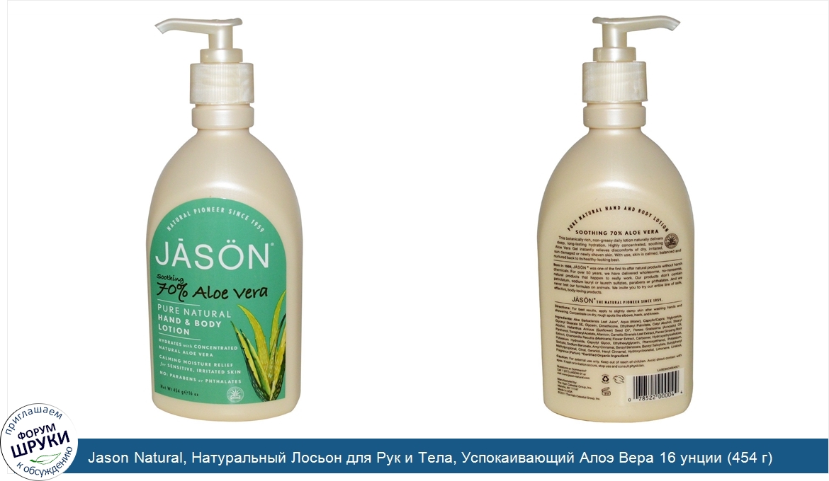 Друзья, если у вас есть отзыв/дополнение/комментарий/вопрос относительно Jason Natural, Натуральный Лосьон для Рук и Тела, Успокаивающий Алоэ Вера 16 унции (454 г) - напишите его ответом в эту тему (это будет полезно всему сообществу в целом и вам в отдельности).