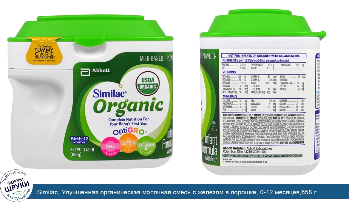 Similac, Улучшенная органическая молочная смесь с железом в порошке, 0-12 месяцев,658 г