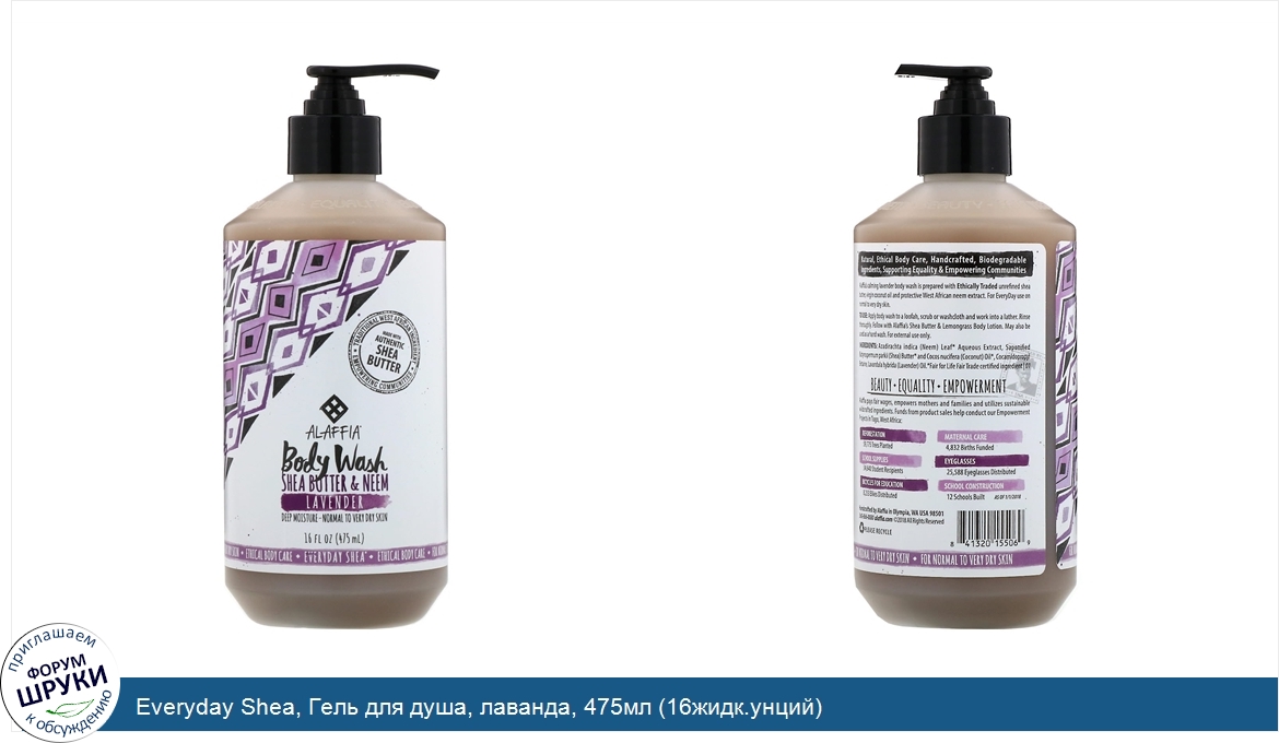 Друзья, если у вас есть отзыв/дополнение/комментарий/вопрос относительно Everyday Shea, Гель для душа, лаванда, 475мл (16жидк.унций) - напишите его ответом в эту тему (это будет полезно всему сообществу в целом и вам в отдельности).