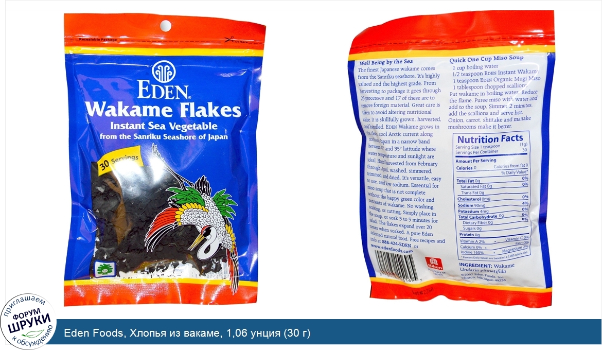 Друзья, если у вас есть отзыв/дополнение/комментарий/вопрос относительно Eden Foods, Хлопья из вакаме, 1,06 унция (30 г) - напишите его ответом в эту тему (это будет полезно всему сообществу в целом и вам в отдельности).