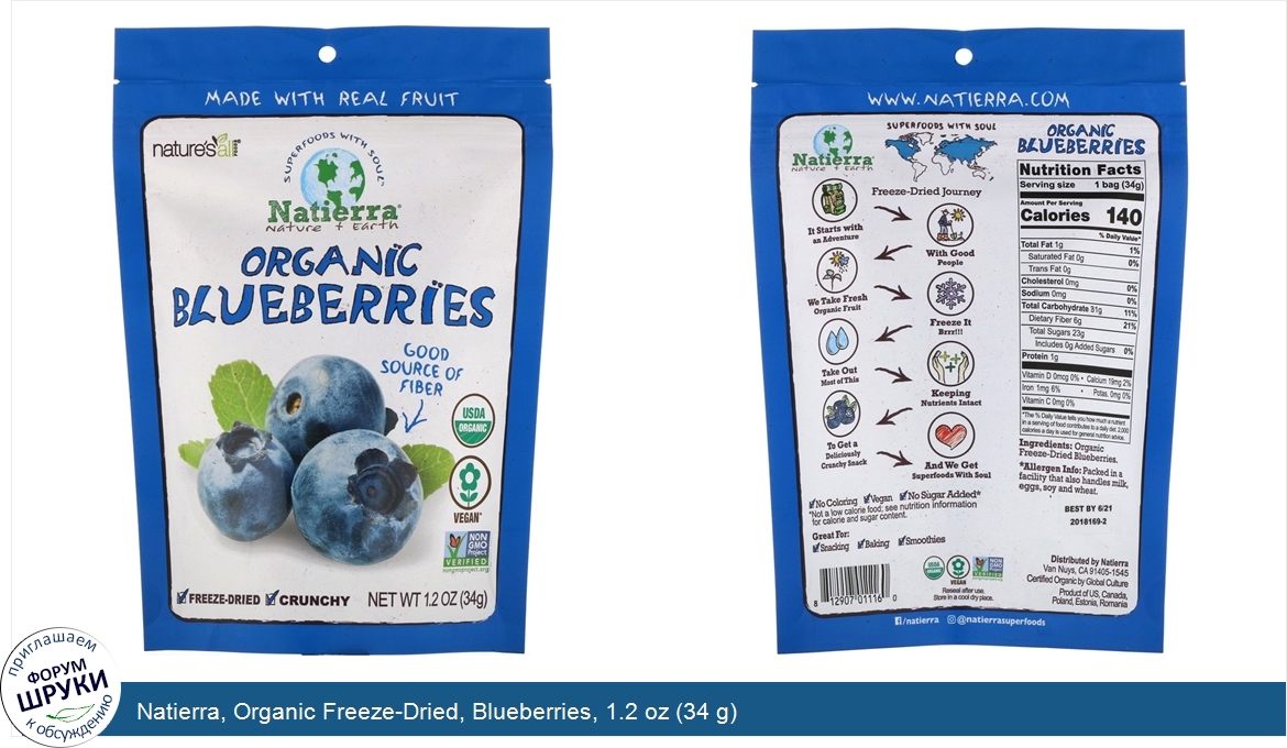 Друзья, если у вас есть отзыв/дополнение/комментарий/вопрос относительно Natierra, Organic Freeze-Dried, Blueberries, 1.2 oz (34 g) - напишите его ответом в эту тему (это будет полезно всему сообществу в целом и вам в отдельности).