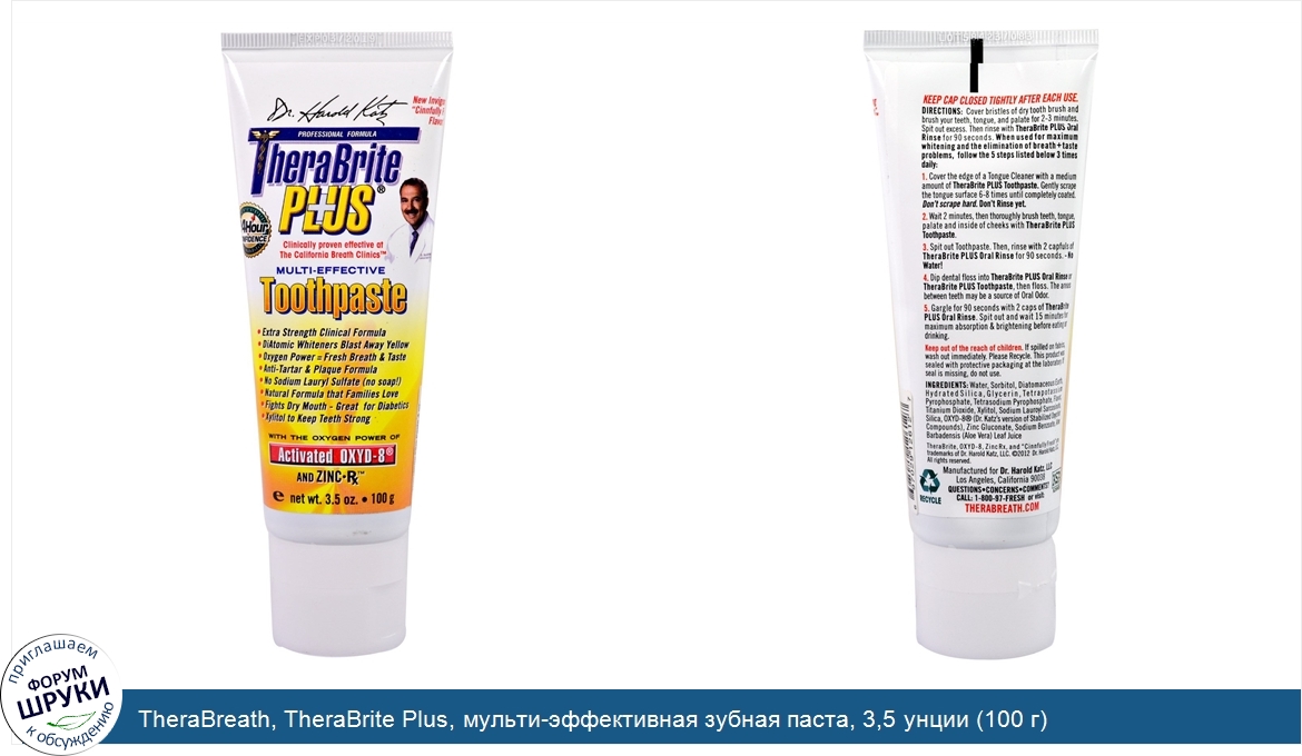 ru TheraBreath, TheraBrite Plus, мульти-эффективная зубная паста, 3,5 унции (100 г)