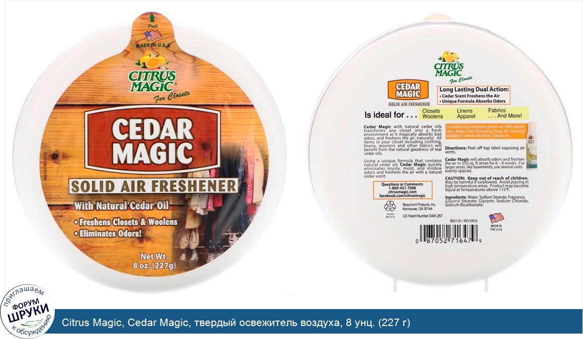 Друзья, если у вас есть отзыв/дополнение/комментарий/вопрос относительно Citrus Magic, Cedar Magic, твердый освежитель воздуха, 8 унц. (227 г) - напишите его ответом в эту тему (это будет полезно всему сообществу в целом и вам в отдельности).
