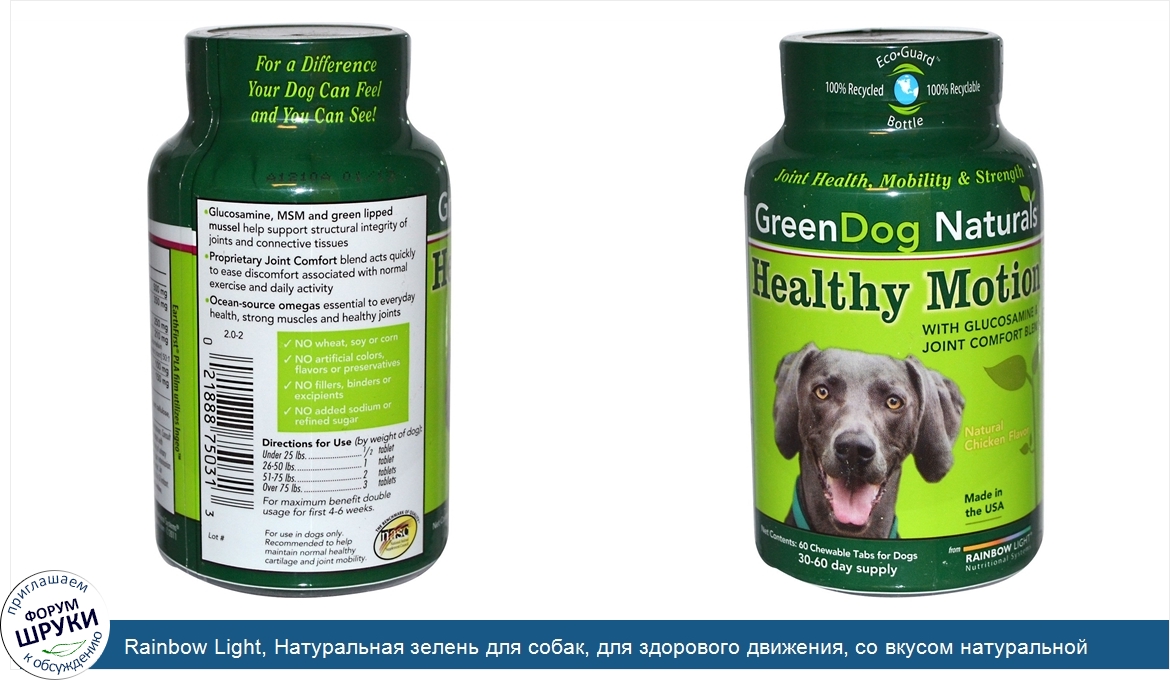 Друзья, если у вас есть отзыв/дополнение/комментарий/вопрос относительно Rainbow Light, Натуральная зелень для собак, для здорового движения, со вкусом натуральной курицы, 60 жевательных таблетки - напишите его ответом в эту тему (это будет полезно всему сообществу в целом и вам в отдельности).