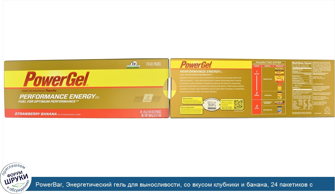 PowerBar, Энергетический гель для выносливости, со вкусом клубники и банана, 24 пакетиков с гелевым содержимым, 1,44 унции (41 г) каждый