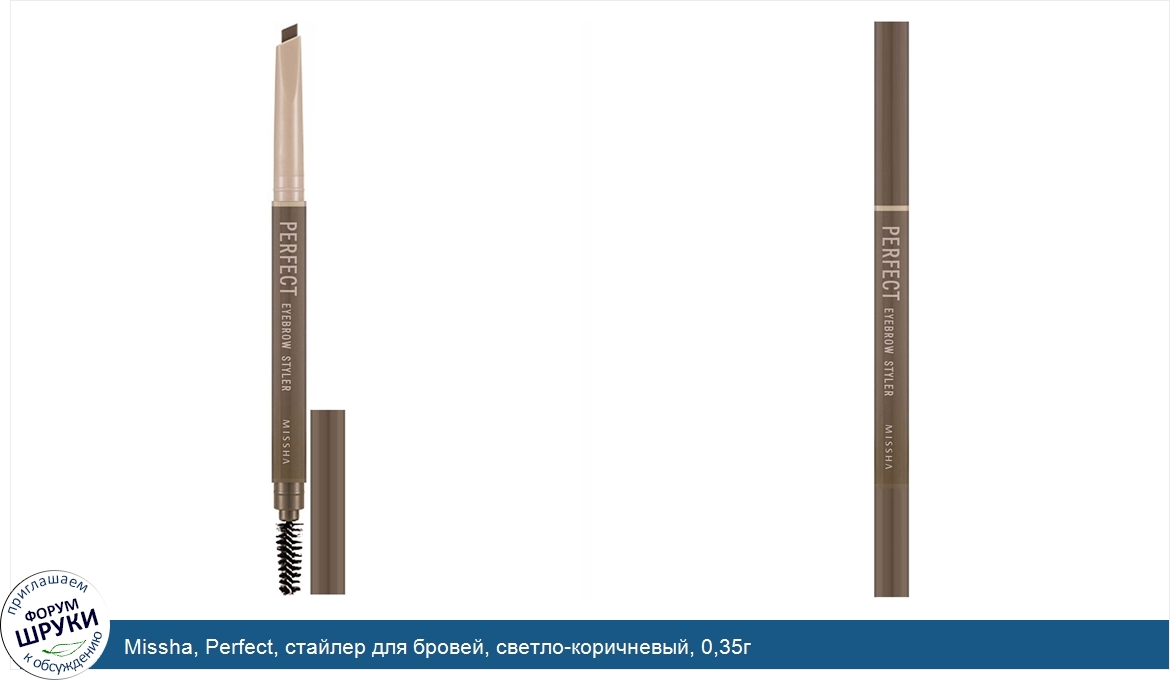 Друзья, если у вас есть отзыв/дополнение/комментарий/вопрос относительно Missha, Perfect, стайлер для бровей, светло-коричневый, 0,35г - напишите его ответом в эту тему (это будет полезно всему сообществу в целом и вам в отдельности).