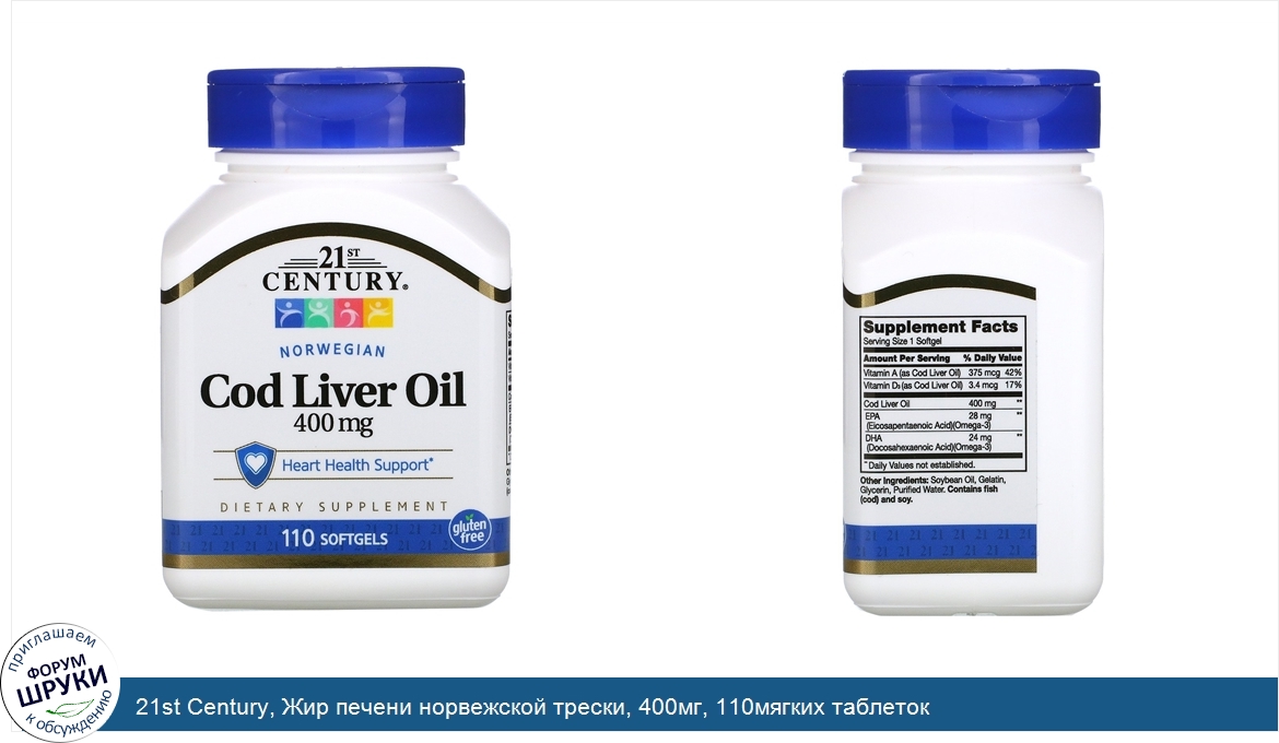 Друзья, если у вас есть отзыв/дополнение/комментарий/вопрос относительно 21st Century, Жир печени норвежской трески, 400мг, 110мягких таблеток - напишите его ответом в эту тему (это будет полезно всему сообществу в целом и вам в отдельности).