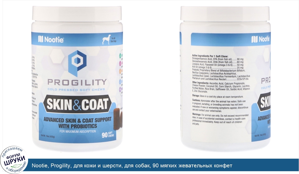 Друзья, если у вас есть отзыв/дополнение/комментарий/вопрос относительно Nootie, Progility, для кожи и шерсти, для собак, 90 мягких жевательных конфет - напишите его ответом в эту тему (это будет полезно всему сообществу в целом и вам в отдельности).