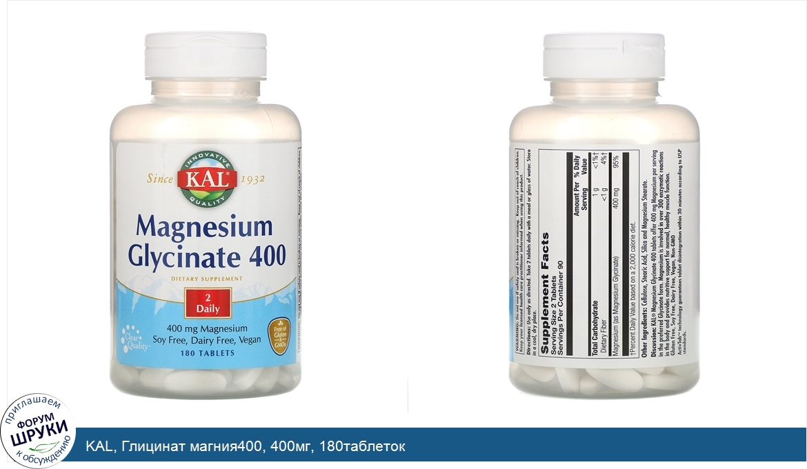 KAL, Глицинат магния400, 400мг, 180таблеток