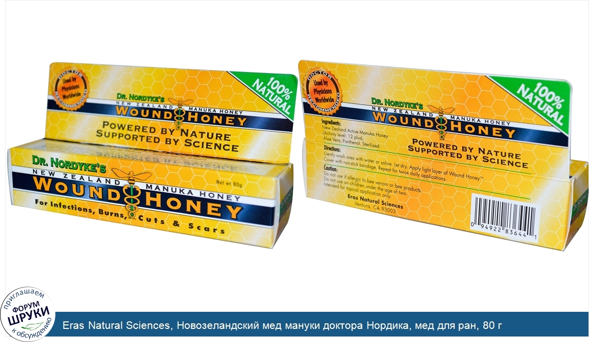 Eras Natural Sciences, Новозеландский мед мануки доктора Нордика, мед для ран, 80 г