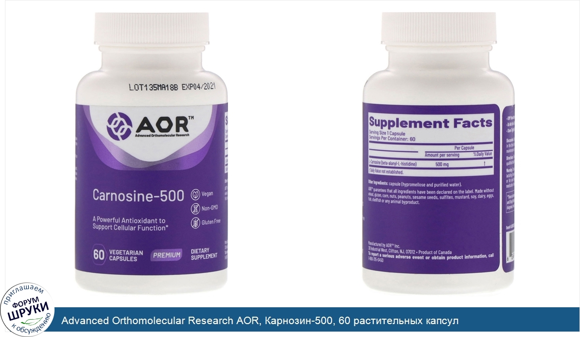 Друзья, если у вас есть отзыв/дополнение/комментарий/вопрос относительно Advanced Orthomolecular Research AOR, Карнозин-500, 60 растительных капсул - напишите его ответом в эту тему (это будет полезно всему сообществу в целом и вам в отдельности).