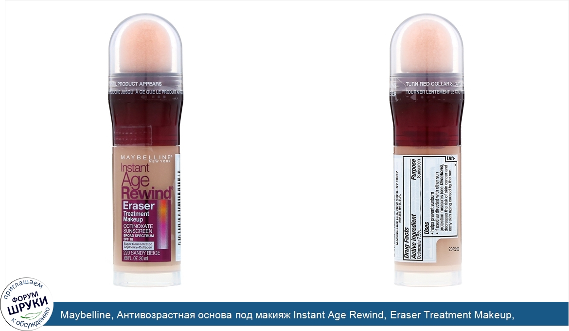 Maybelline, Антивозрастная основа под макияж Instant Age Rewind, Eraser Treatment Makeup, оттенок 220 песочный бежевый, 20мл