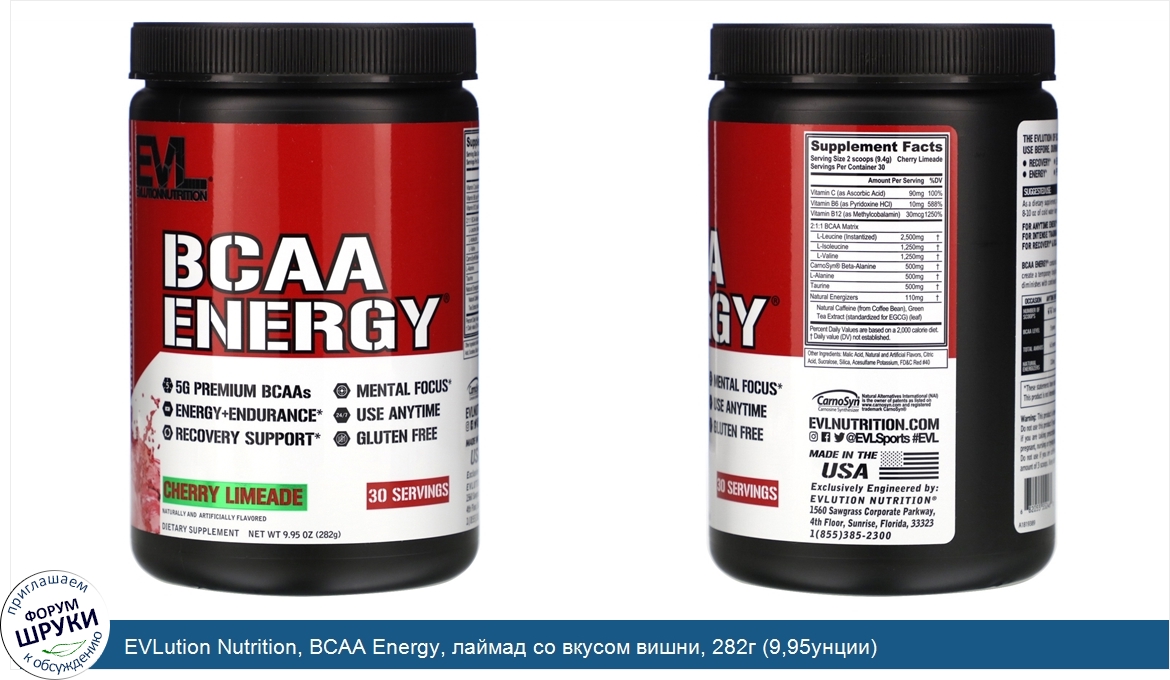 EVLution Nutrition, BCAA Energy, лаймад со вкусом вишни, 282г (9,95унции)