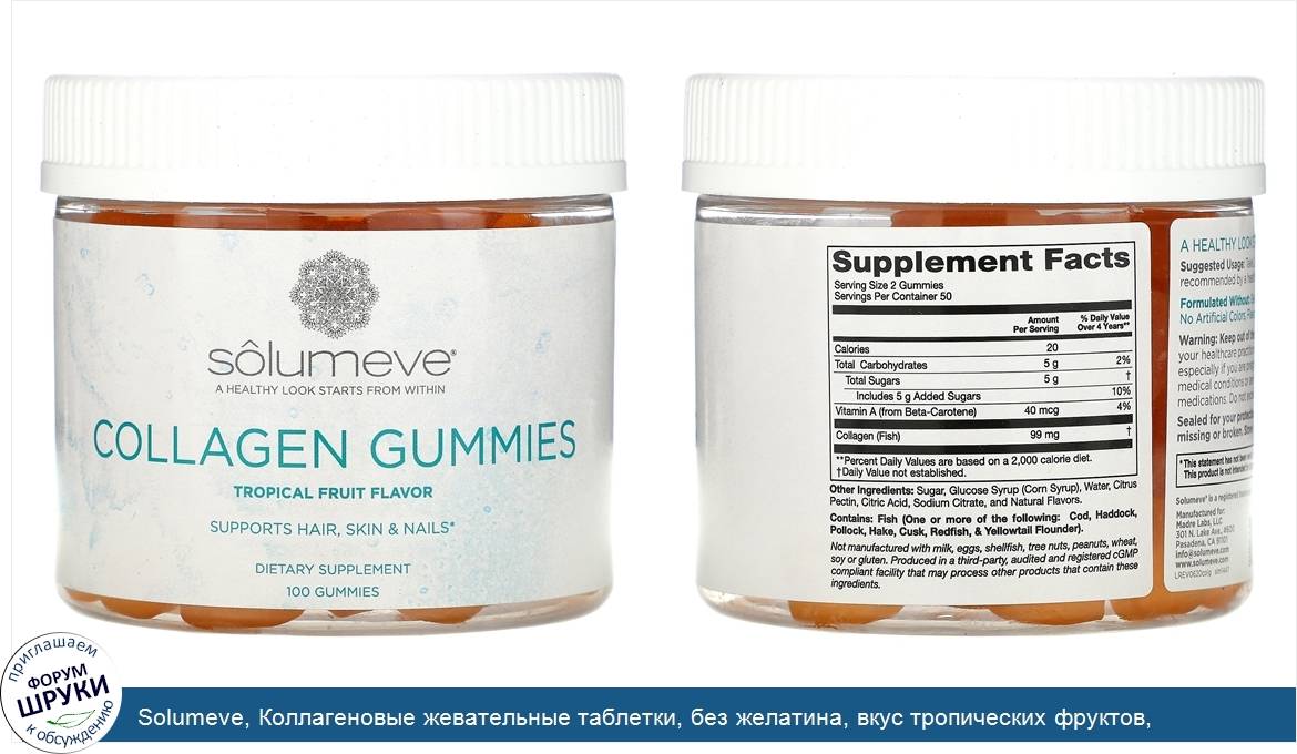 Друзья, если у вас есть отзыв/дополнение/комментарий/вопрос относительно Solumeve, Коллагеновые жевательные таблетки, без желатина, вкус тропических фруктов, 100жевательных таблеток - напишите его ответом в эту тему (это будет полезно всему сообществу в целом и вам в отдельности).