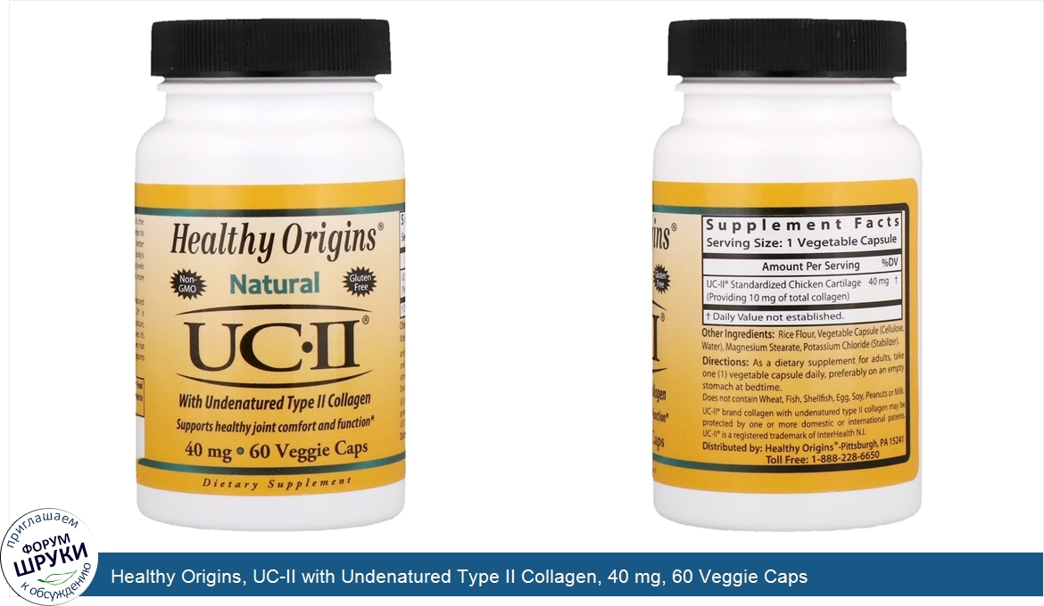 Друзья, если у вас есть отзыв/дополнение/комментарий/вопрос относительно Healthy Origins, UC-II with Undenatured Type II Collagen, 40 mg, 60 Veggie Caps - напишите его ответом в эту тему (это будет полезно всему сообществу в целом и вам в отдельности).
