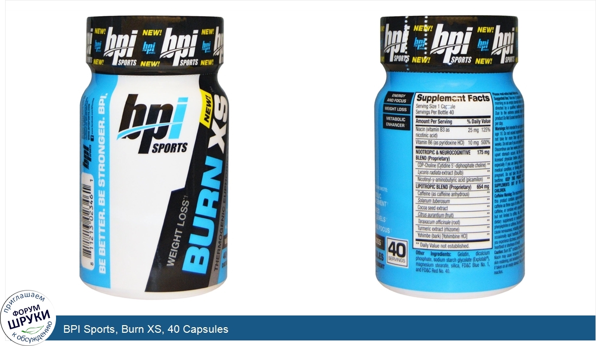 Друзья, если у вас есть отзыв/дополнение/комментарий/вопрос относительно BPI Sports, Burn XS, 40 Capsules - напишите его ответом в эту тему (это будет полезно всему сообществу в целом и вам в отдельности).