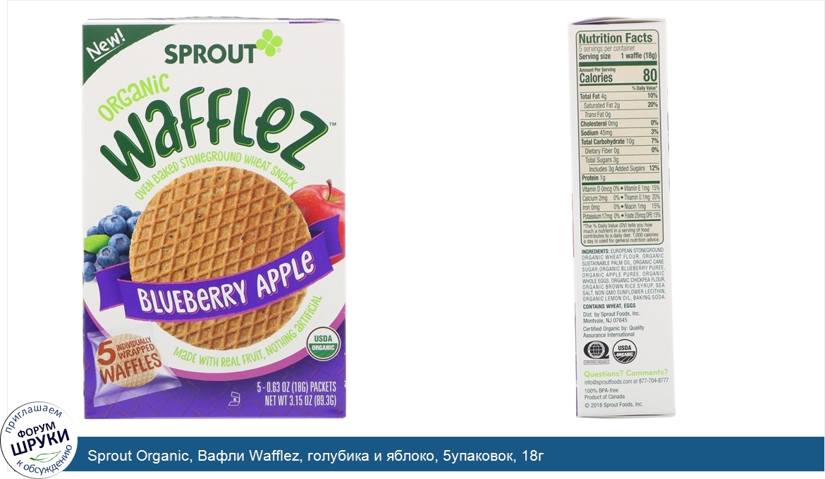 [DESCRIPT]Oven Baked Stoneground Wheat Snack. Made with Real Fruit, Nothing Artificial. 5 Individually Wrapped Waffles. USDA Certified Organic. Kosher. Made with 100% Stoneground European Wheat, Real Fruit. Certified Organic by Quality Assurance International. No Added Colors or Flavors. Made With Real Organic Whole Eggs. Non GMO. The Perfect Oven Baked Snack For Hungry Toddlers. Sprout - Wholesome Snacking Made Fun! . 100% BPA-Free. Sprout has re-imagined the popular Belgian treat to create the perfect toddler snack. Each individual wrapped waffle made with organic stoneground wheat flour whole fruits mixed throughout the yummy batter provides a perfect, wholesome delicious snack for little hands. Is your child ready for Wafflez? . Starts to stand and walk alone. Feeds self easily with fingers. Chews through a variety of textures. Eat thicker solids with larger pieces.[/DESCRIPT]... (описание дополняется)