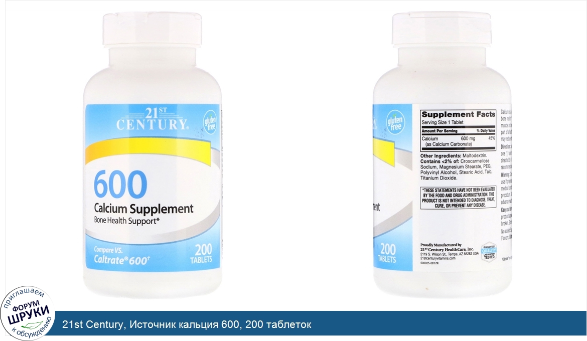 Друзья, если у вас есть отзыв/дополнение/комментарий/вопрос относительно 21st Century, Источник кальция 600, 200 таблеток - напишите его ответом в эту тему (это будет полезно всему сообществу в целом и вам в отдельности).