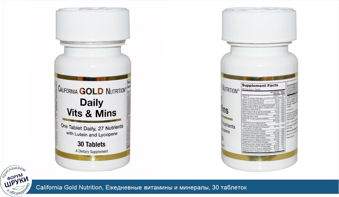 Друзья, если у вас есть отзыв/дополнение/комментарий/вопрос относительно California Gold Nutrition, Ежедневные витамины и минералы, 30 таблеток - напишите его ответом в эту тему (это будет полезно всему сообществу в целом и вам в отдельности).