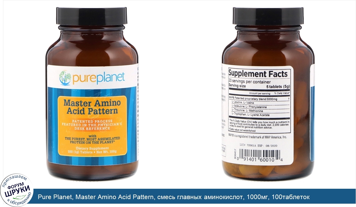 Друзья, если у вас есть отзыв/дополнение/комментарий/вопрос относительно Pure Planet, Master Amino Acid Pattern, смесь главных аминокислот, 1000мг, 100таблеток - напишите его ответом в эту тему (это будет полезно всему сообществу в целом и вам в отдельности).