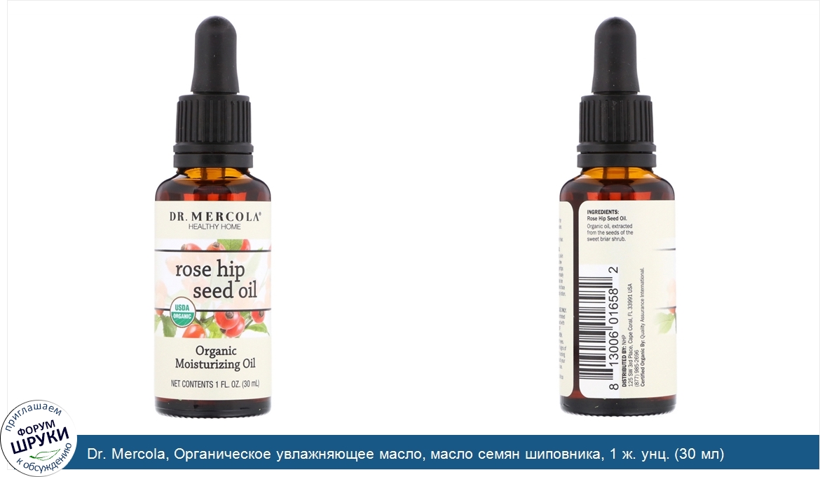 Dr. Mercola, Органическое увлажняющее масло, масло семян шиповника, 1 ж. унц. (30 мл)