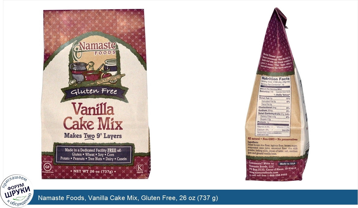 Друзья, если у вас есть отзыв/дополнение/комментарий/вопрос относительно Namaste Foods, Vanilla Cake Mix, Gluten Free, 26 oz (737 g) - напишите его ответом в эту тему (это будет полезно всему сообществу в целом и вам в отдельности).