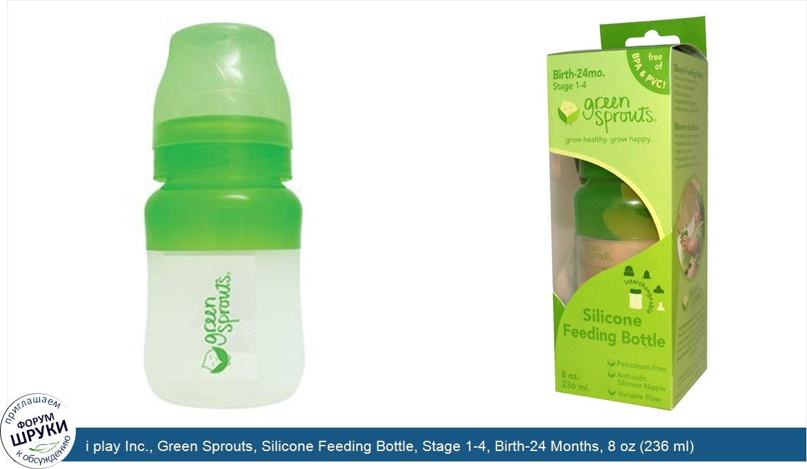 i play Inc., Green Sprouts, Silicone Feeding Bottle, Stage 1-4, Birth-24 Months, 8 oz (236 ml)