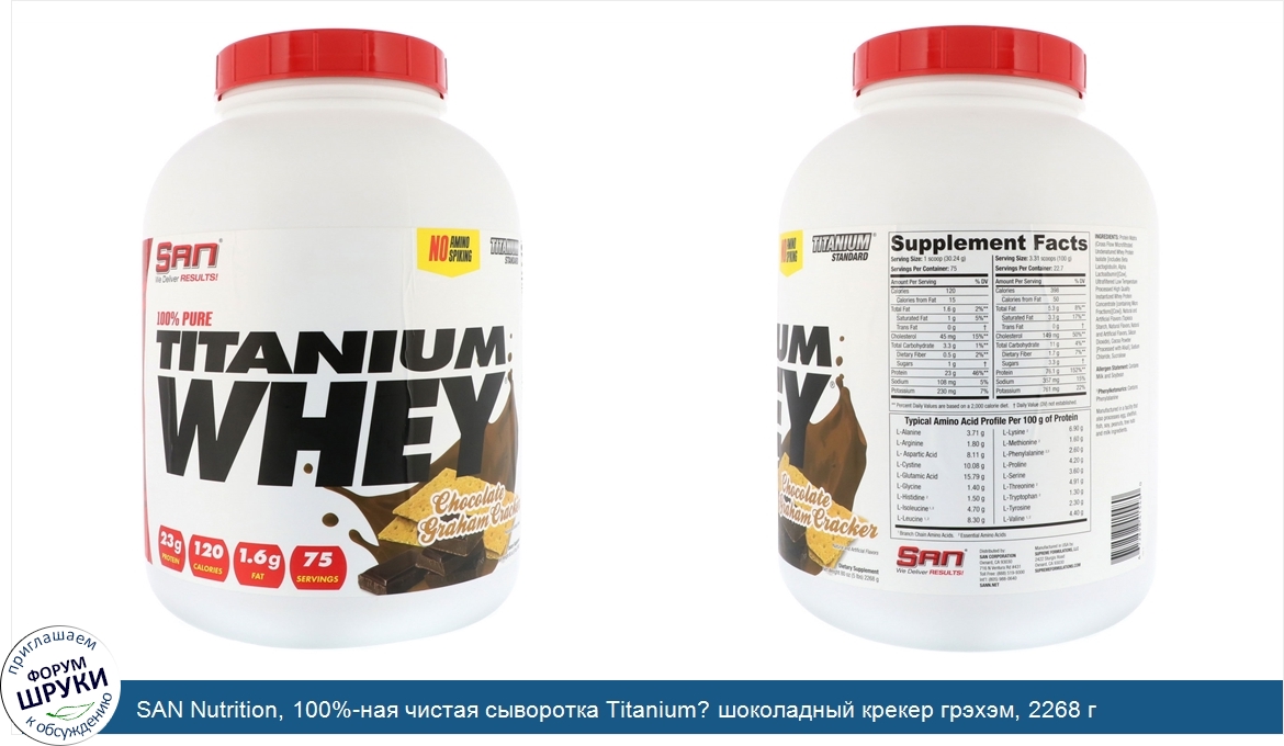 SAN Nutrition, 100%-ная чистая сыворотка Titanium? шоколадный крекер грэхэм, 2268 г
