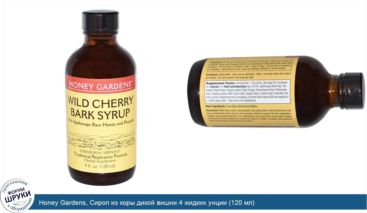 Друзья, если у вас есть отзыв/дополнение/комментарий/вопрос относительно Honey Gardens, Сироп из коры дикой вишни 4 жидких унции (120 мл) - напишите его ответом в эту тему (это будет полезно всему сообществу в целом и вам в отдельности).