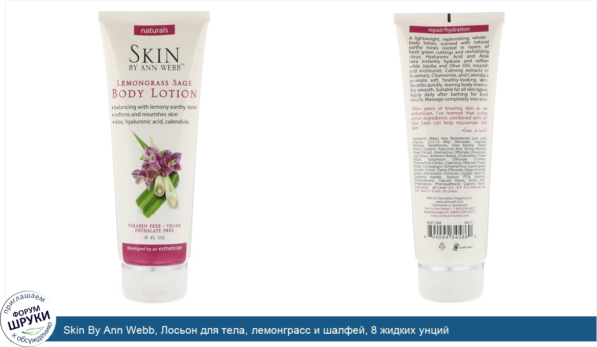 Друзья, если у вас есть отзыв/дополнение/комментарий/вопрос относительно Skin By Ann Webb, Лосьон для тела, лемонграсс и шалфей, 8 жидких унций - напишите его ответом в эту тему (это будет полезно всему сообществу в целом и вам в отдельности).