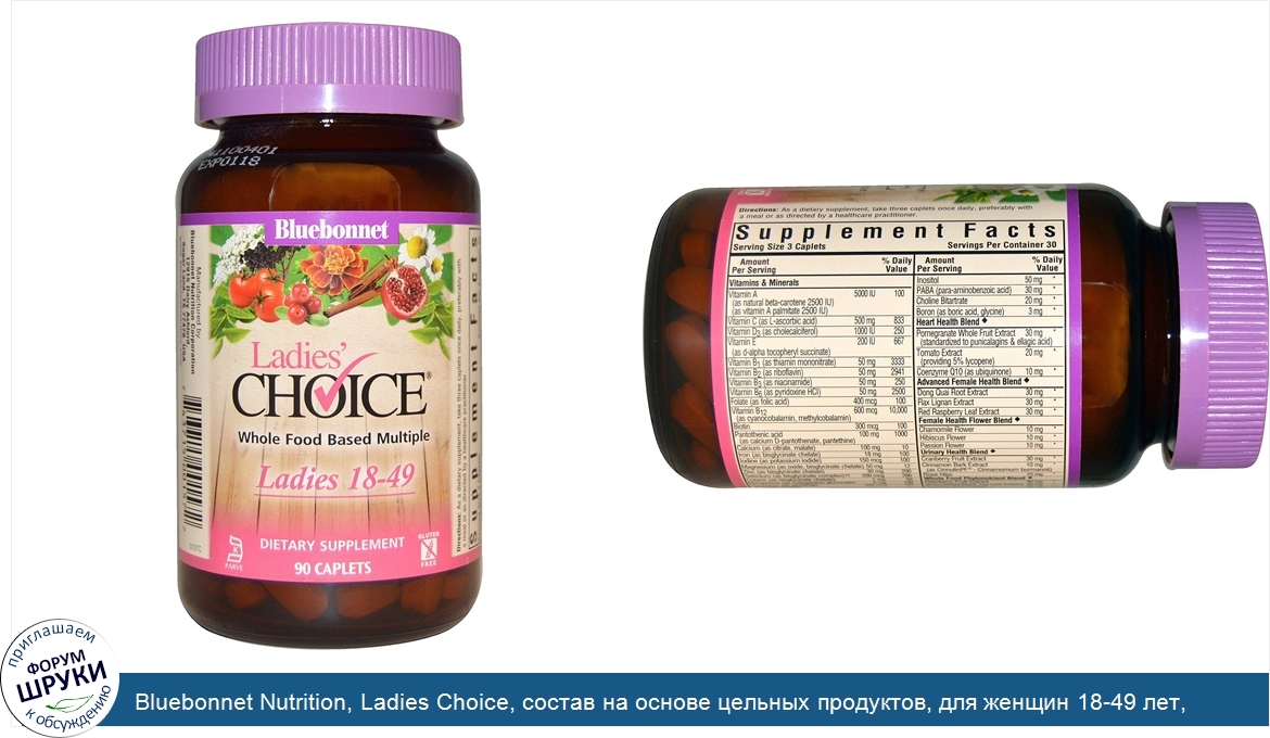 Друзья, если у вас есть отзыв/дополнение/комментарий/вопрос относительно Bluebonnet Nutrition, Ladies Choice, состав на основе цельных продуктов, для женщин 18-49 лет, 90 капсул - напишите его ответом в эту тему (это будет полезно всему сообществу в целом и вам в отдельности).