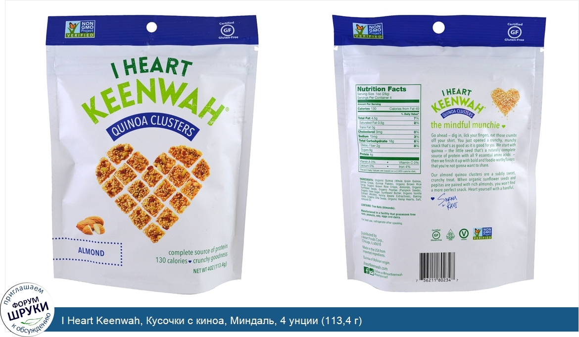 Друзья, если у вас есть отзыв/дополнение/комментарий/вопрос относительно I Heart Keenwah, Кусочки с киноа, Миндаль, 4 унции (113,4 г) - напишите его ответом в эту тему (это будет полезно всему сообществу в целом и вам в отдельности).