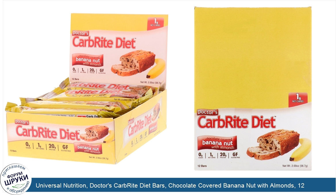 Universal Nutrition, Doctor's CarbRite Diet Bars, Chocolate Covered Banana Nut with Almonds, 12 Bars, 2 oz (56.7 g) Each