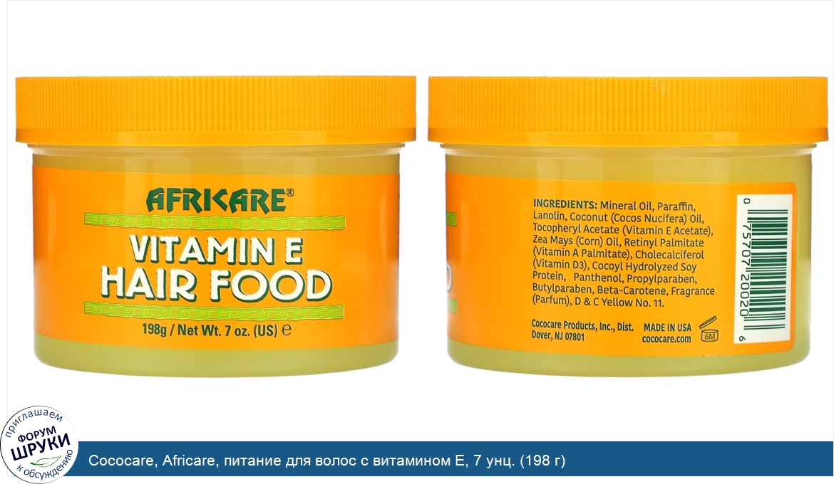 Друзья, если у вас есть отзыв/дополнение/комментарий/вопрос относительно Cococare, Africare, питание для волос с витамином Е, 7 унц. (198 г) - напишите его ответом в эту тему (это будет полезно всему сообществу в целом и вам в отдельности).