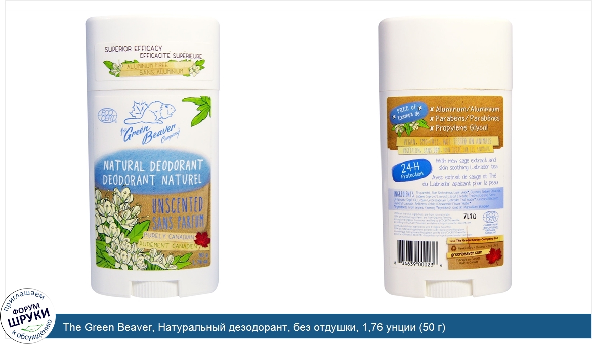 ru The Green Beaver, Натуральный дезодорант, без отдушки, 1,76 унции (50 г)