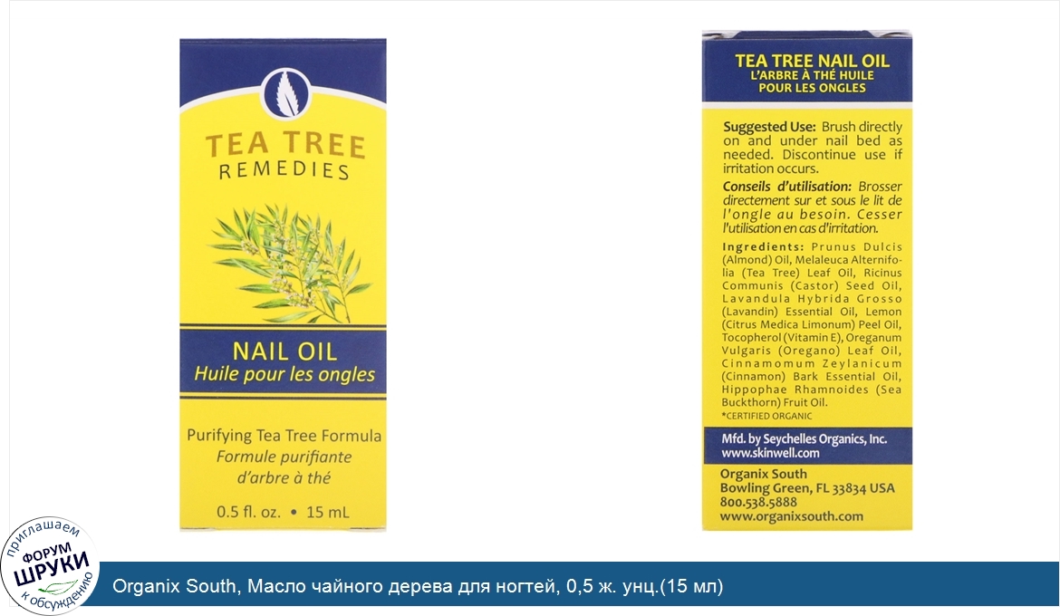 Organix South, Масло чайного дерева для ногтей, 0,5 ж. унц.(15 мл)