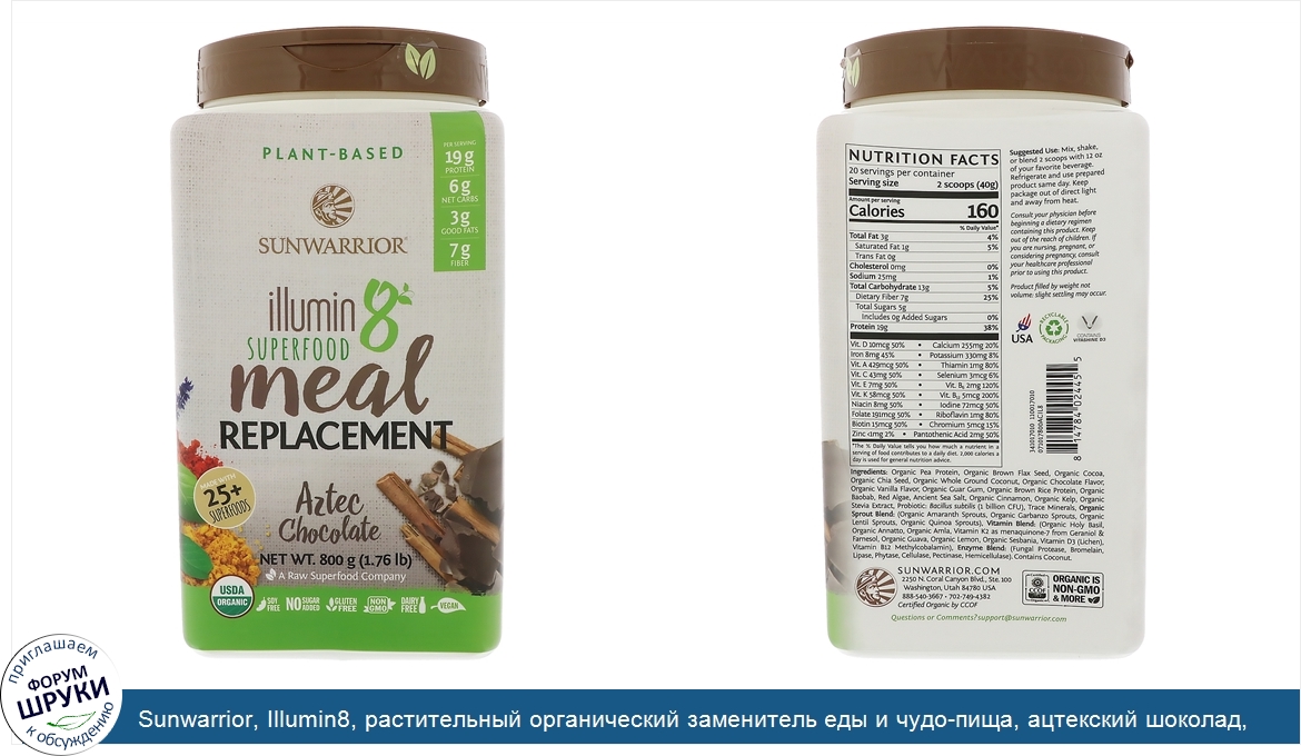Друзья, если у вас есть отзыв/дополнение/комментарий/вопрос относительно Sunwarrior, Illumin8, растительный органический заменитель еды и чудо-пища, ацтекский шоколад, 800 г - напишите его ответом в эту тему (это будет полезно всему сообществу в целом и вам в отдельности).