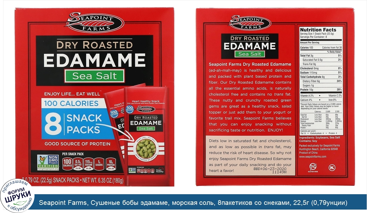 Друзья, если у вас есть отзыв/дополнение/комментарий/вопрос относительно Seapoint Farms, Сушеные бобы эдамаме, морская соль, 8пакетиков со снеками, 22,5г (0,79унции) каждый - напишите его ответом в эту тему (это будет полезно всему сообществу в целом и вам в отдельности).