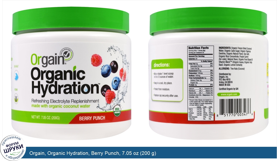 Orgain, Organic Hydration, Berry Punch, 7.05 oz (200 g)