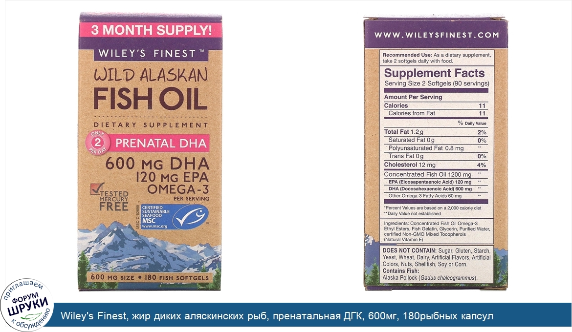 Друзья, если у вас есть отзыв/дополнение/комментарий/вопрос относительно Wiley's Finest, жир диких аляскинских рыб, пренатальная ДГК, 600мг, 180рыбных капсул - напишите его ответом в эту тему (это будет полезно всему сообществу в целом и вам в отдельности).