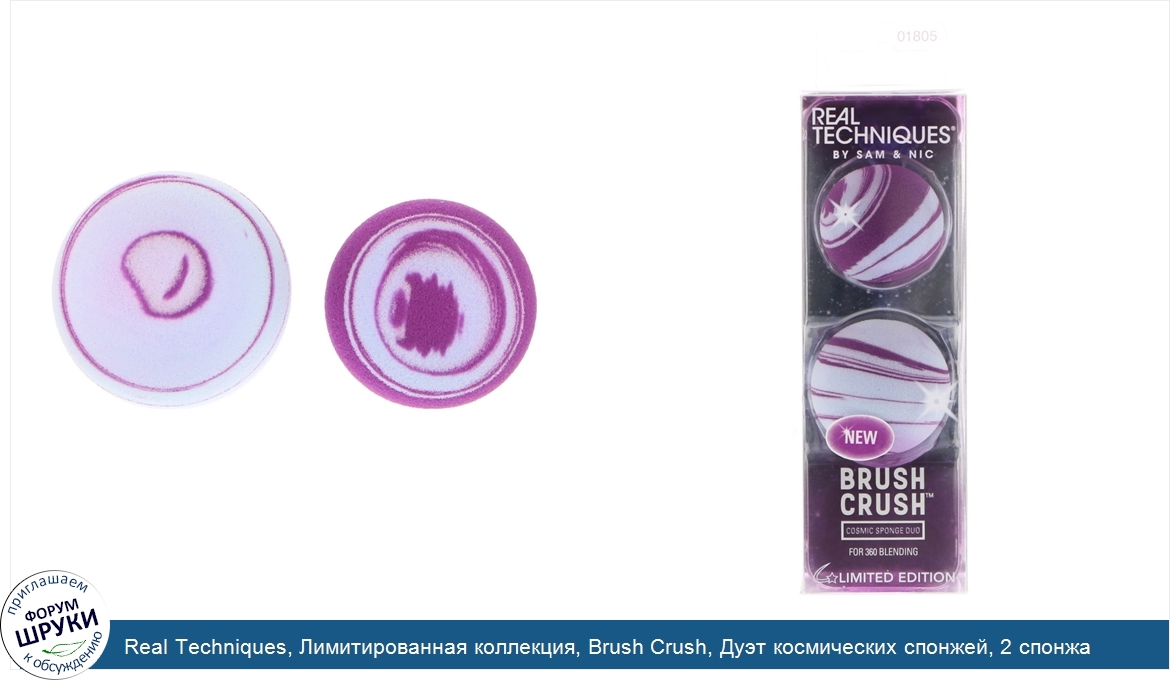ru Real Techniques, Лимитированная коллекция, Brush Crush, Дуэт космических спонжей, 2 спонжа